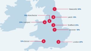 While homeowners everywhere should keep an eye out for potential rogue trades, Newcastle (30 per cent), London (29 per cent), Liverpool (25 per cent), and Sheffield (25 per cent) were the areas where more residents agreed to having been affected by rogue trades.